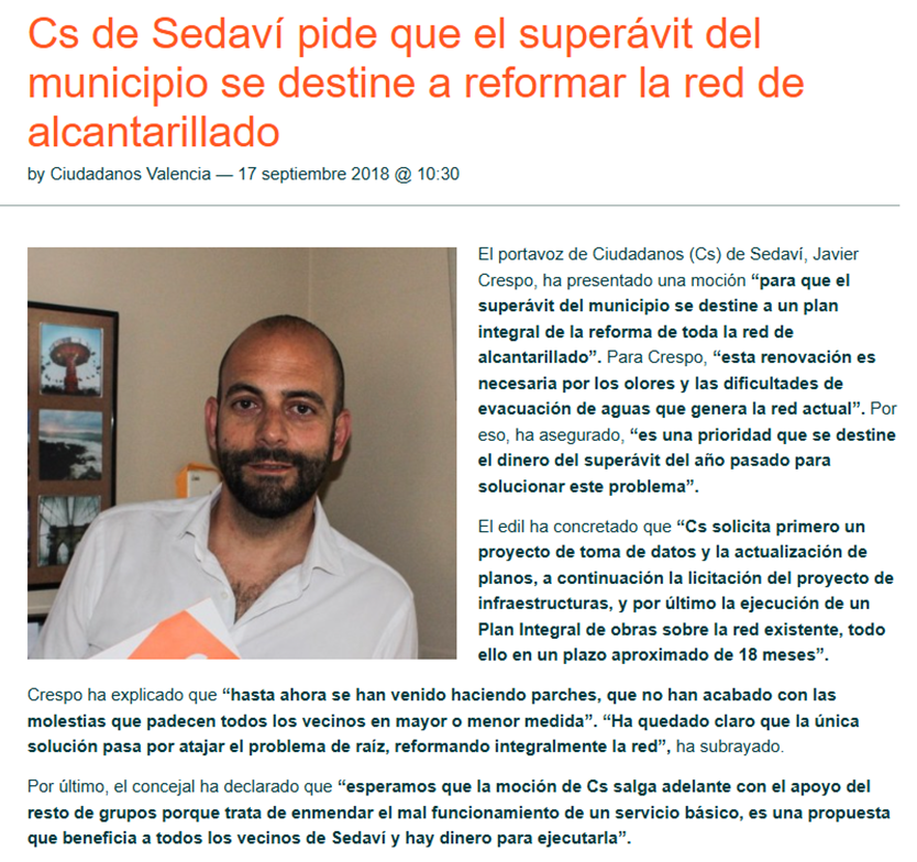 Y 7 AÑOS DESPUES DE QUE LO ANTICIPARA CIUDADANOS Sedaví por medio de su concejal (y arquitecto) Javier Crespo Pistoni.
